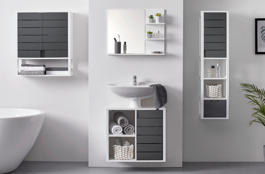 - nástenný nábytok: skrinky, umývadlo a závesná toaleta pre vzdušnejší dojem,