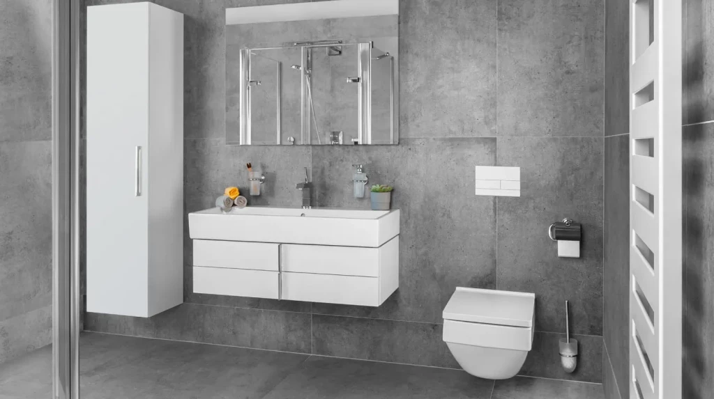 V našej galérii realizácií si všímajte predovšetkým prácu s odtieňmi sivej, bielou sanitárnou keramikou a celistvosť farieb rámu a integráciu detailov. To určuje, či bude kúpeľňa pôsobiť ucelene a sviežo.