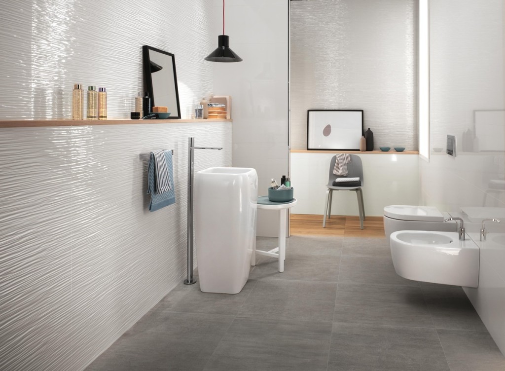 - obklady v bielom s dekorom: mramorové kresby, mozaiky, reliéfne plochy,