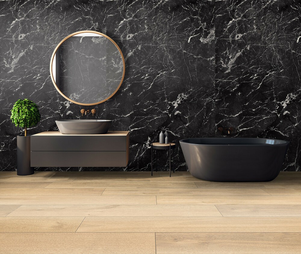 - čierna voľne stojaca vaňa ako výrazný prvok,