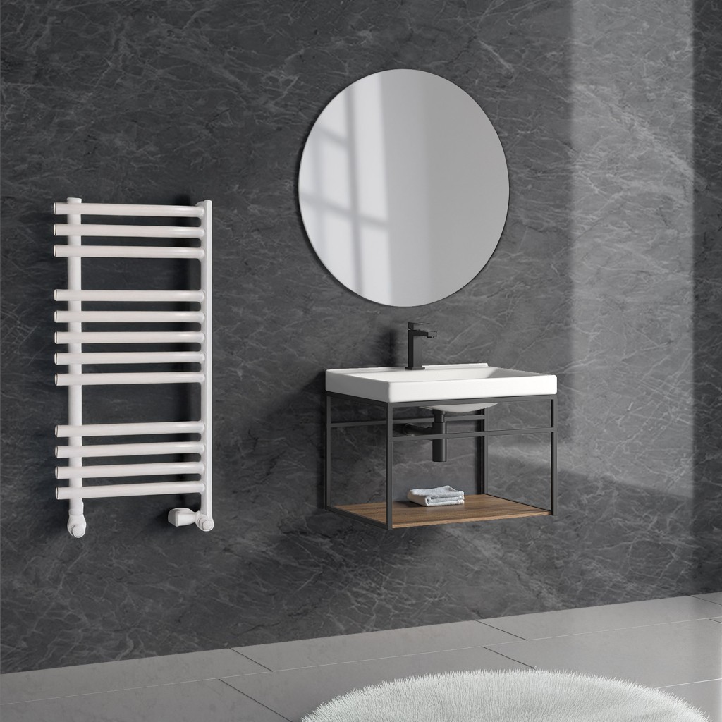 - zjednotenie štýlu prostredníctvom rámovania a doplnkov (rámy zrkadiel, batérie, police),