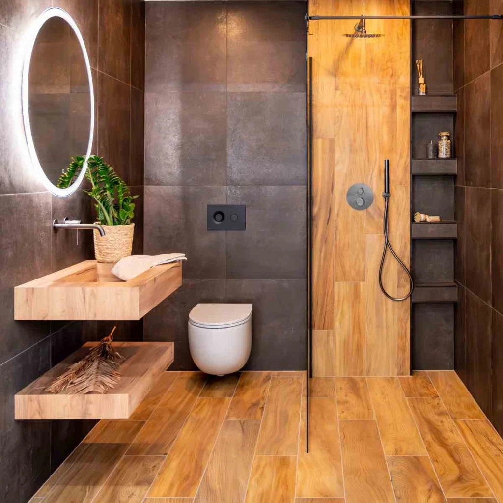 - drevodekor alebo drevo dodá kúpeľni viac tepla.
