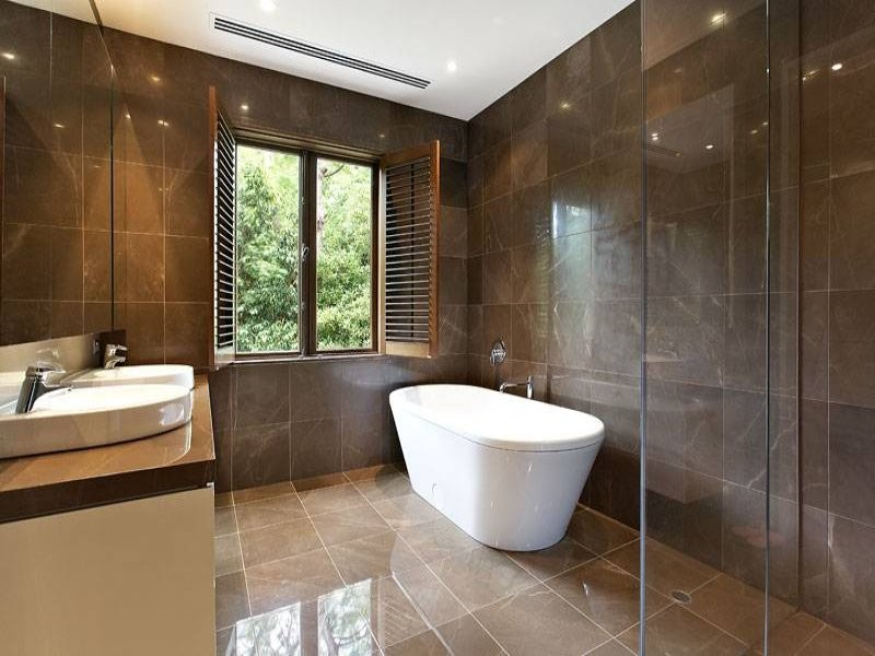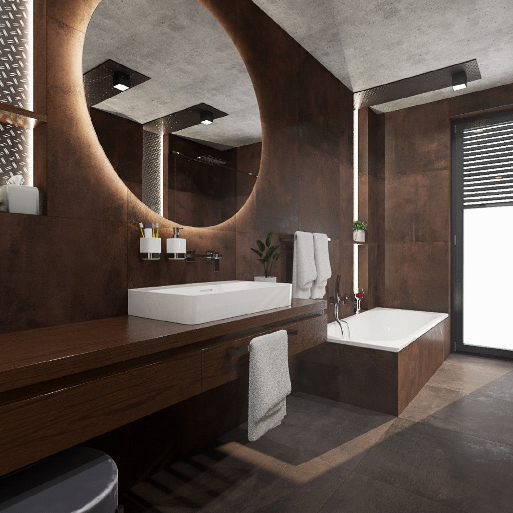 - pri prevažujúcej tmavej hnedej je zásadný dostatok osvetlenia kúpeľne (hlavné svetlo, bodovky + pri zrkadle),