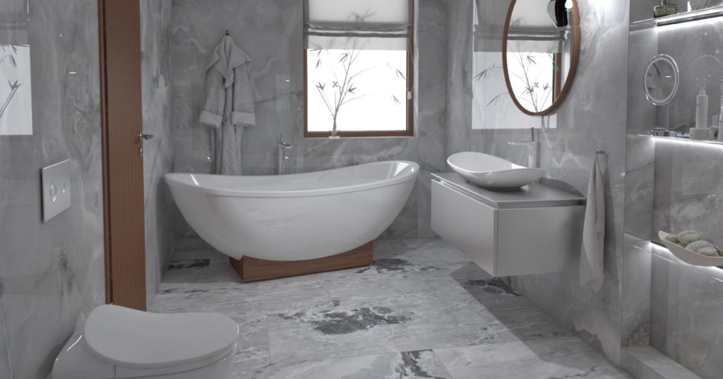 V inšpiráciách sledujte hlavne pomer výrazných mramorových plôch a čistých prvkov, to rozhoduje o celkovom dojme. Vybavenie takej kúpeľne zaobstaráte pohodlne v našom e-shope.