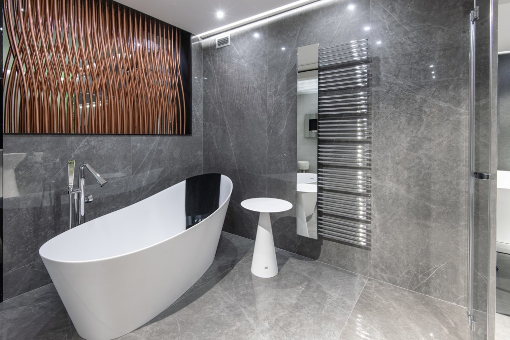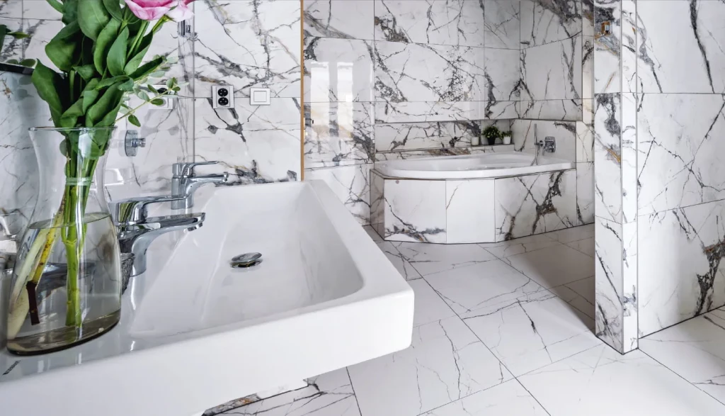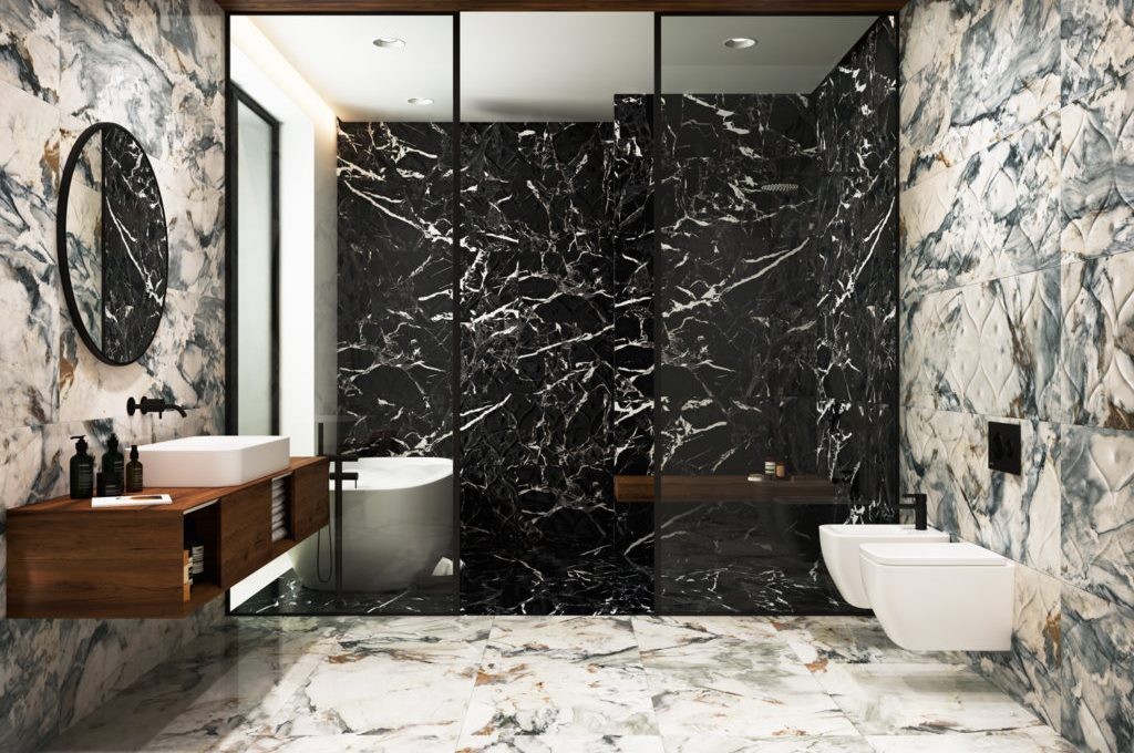 - dominujúce mramorové obklady pôsobia najlepšie s jednofarebnými plochami,
