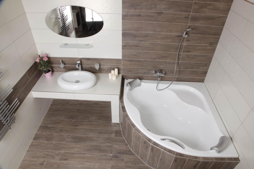 - múdro využije roh a často šetrí miesto oproti klasickej oválnej vani, ktorá potrebuje viac voľného priestoru okolo,