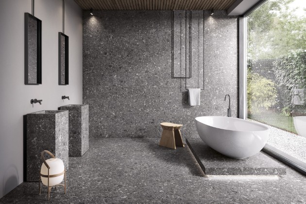 V inšpiráciách sledujte hlavne kombináciu kameňa so svetlom a drevom. Práve to rozhoduje o tom, do akej miery bude kúpeľňa pôsobiť útulne a vzdušne.