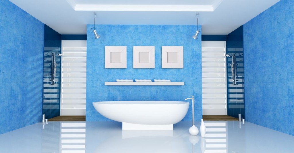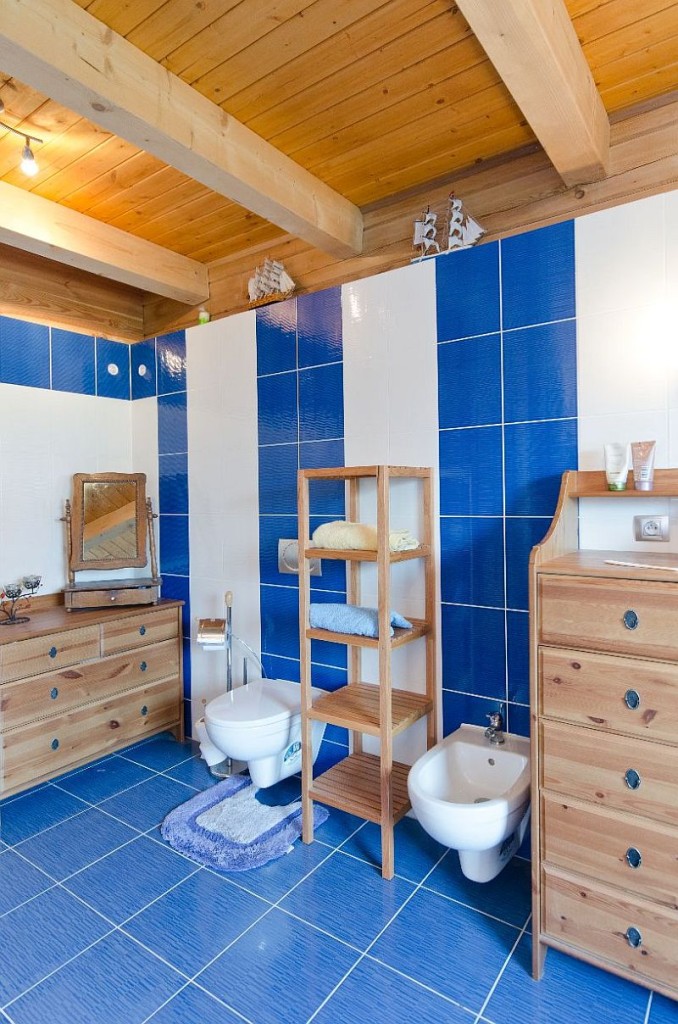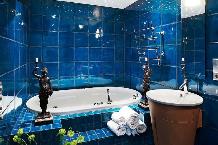 - modrá voľne stojaca vaňa pre neprehliadnuteľný kus vybavenia,