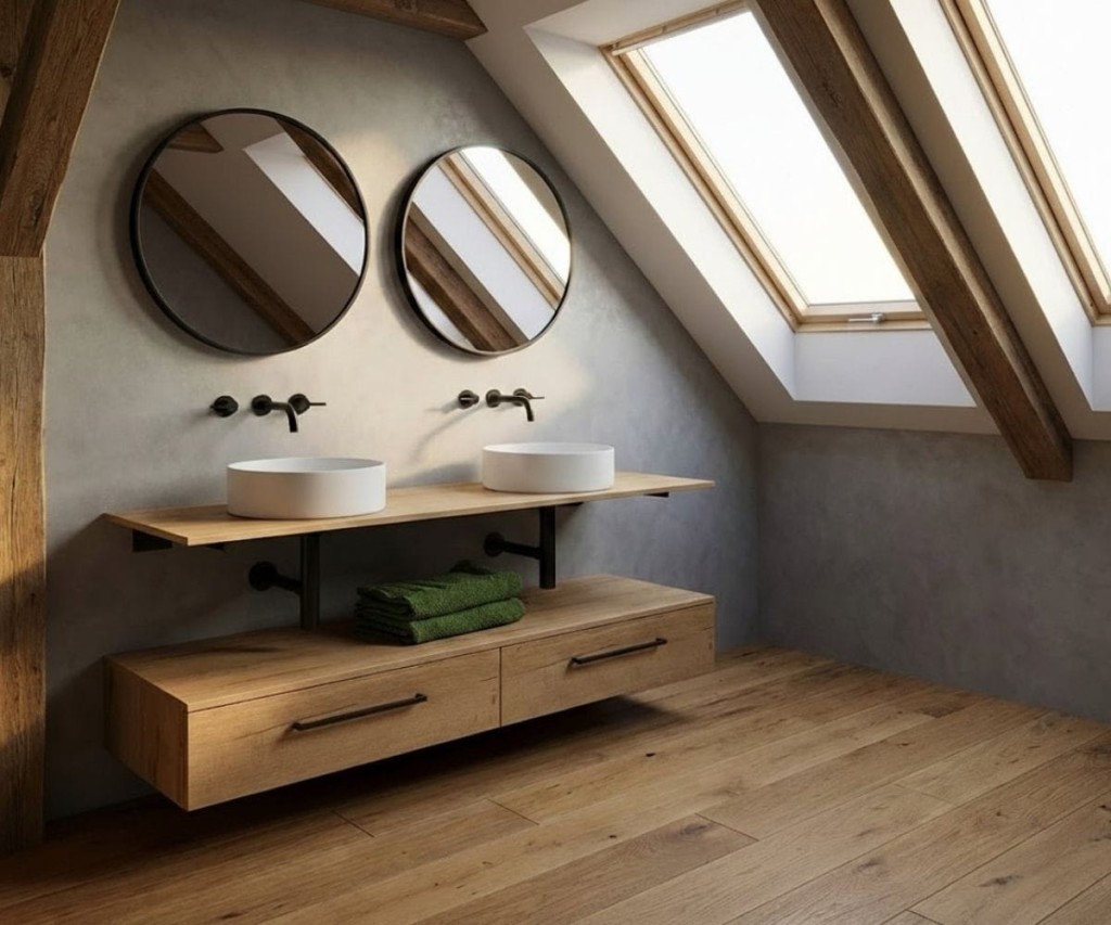 Prezrite si našu fotogalériu pre zariadenie podkrovnej kúpeľne. Načerpajte inšpiráciu pre kúpeľňu pod šikmou strechou, v ktorej hrá rolu každý centimeter. Či riešite malú podkrovnú kúpeľňu, vaňu v podkroví alebo sprchovací kút v podkroví, inšpirácie vám ukážu, ako šikminy využiť múdro a bez preplnenia.
