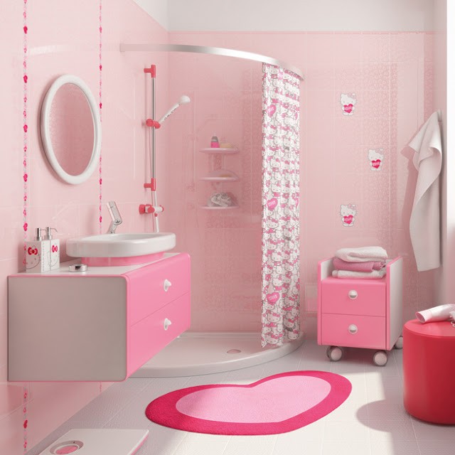 - ružové textílie a doplnky: predložka do kúpeľne, uteráky, sprchový záves,