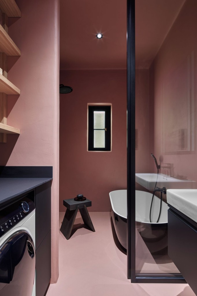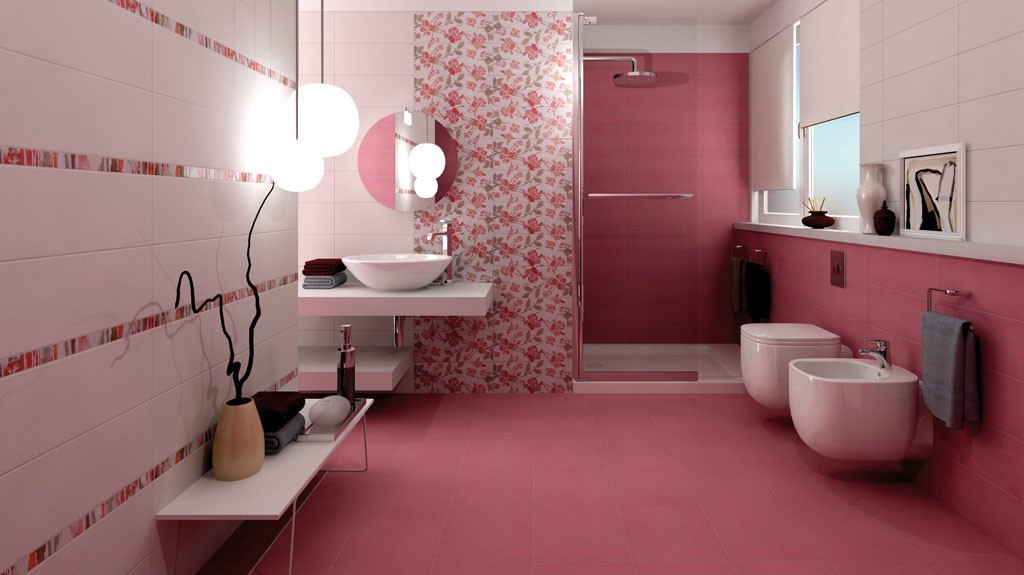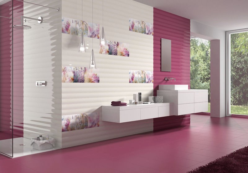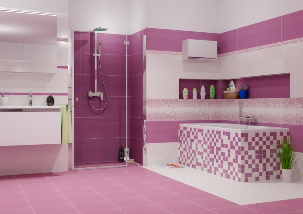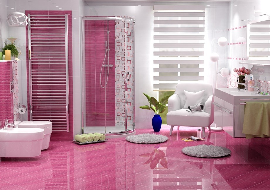 - ružová na stenách a obkladoch (celoplošne alebo ako akcentná zóna),