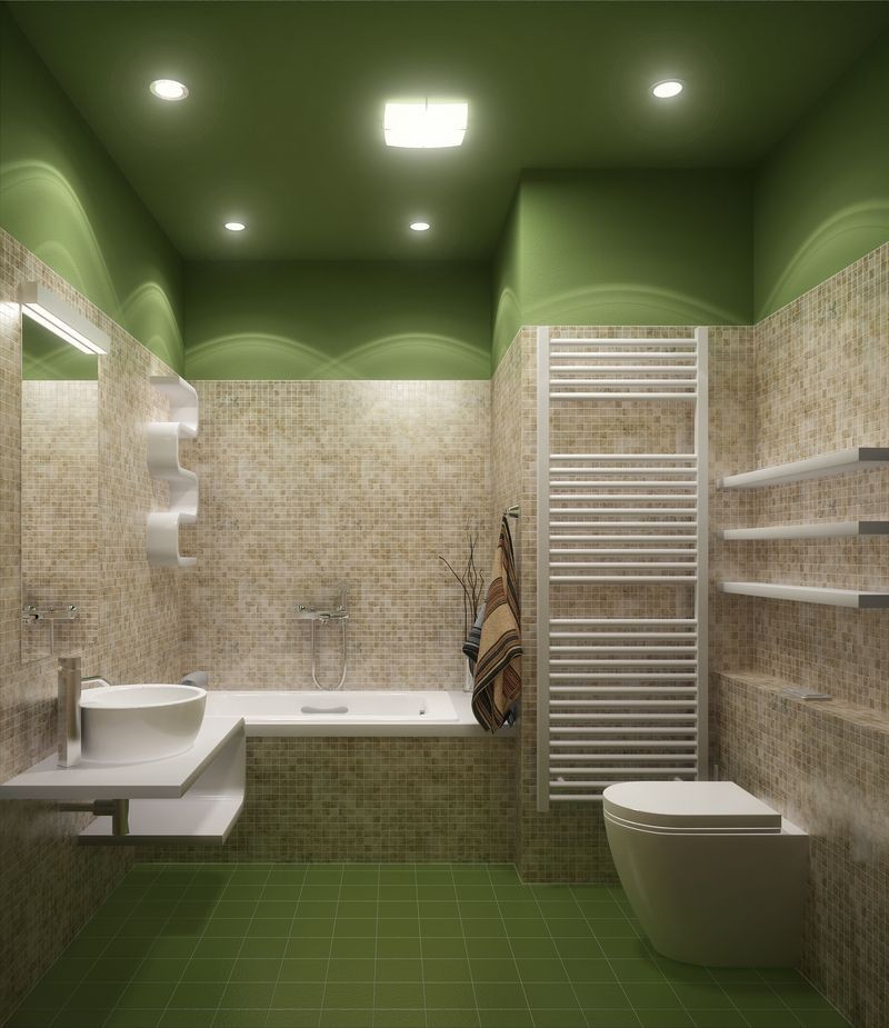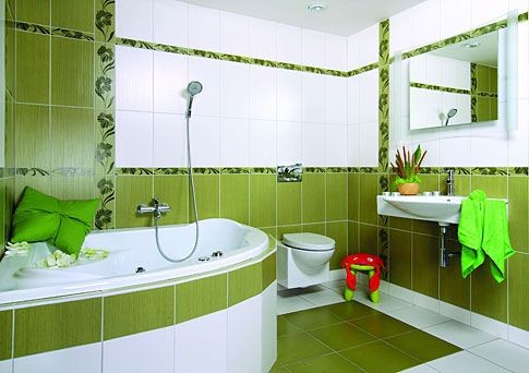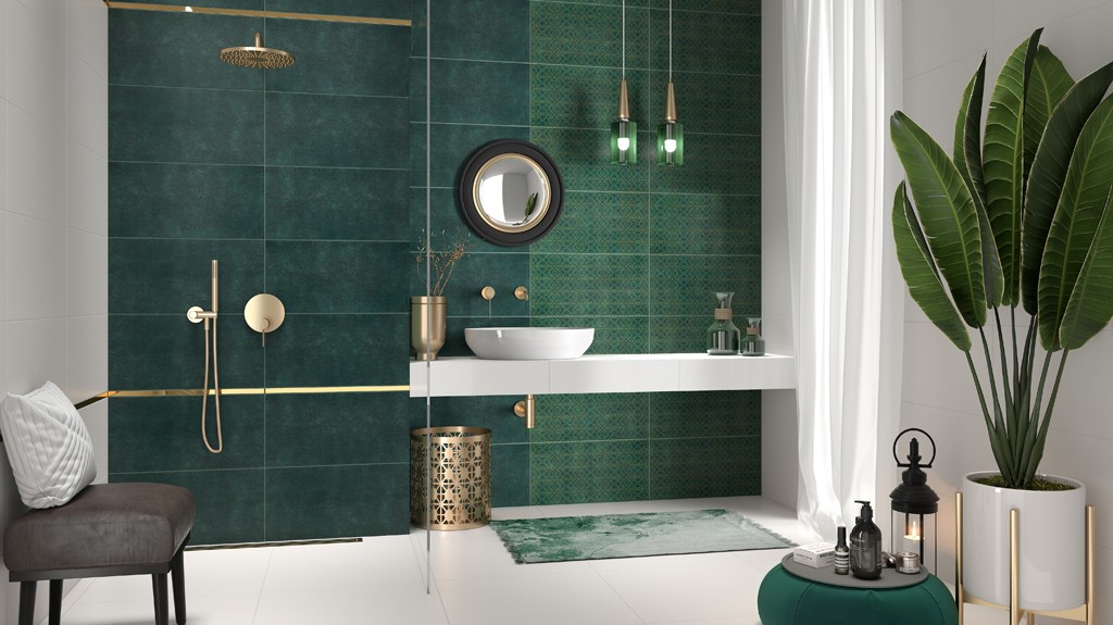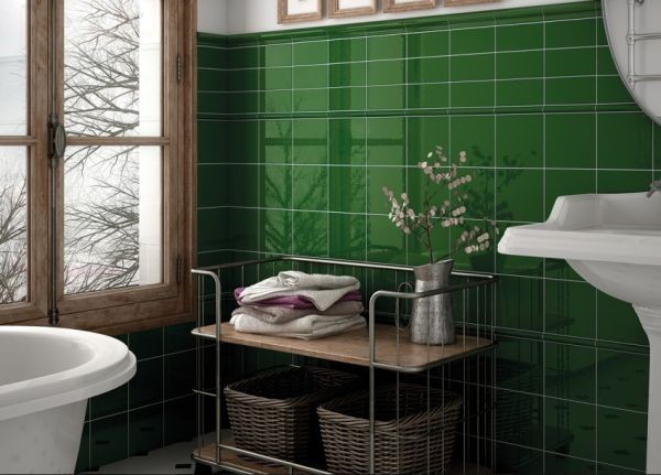 - ak kombinujete viac zelených tónov na obkladoch, zlaďte vybavenie s jedným z nich,