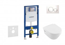 GEBERIT - Kombifix Modul na závesné WC s tlačidlom Sigma01, matný chróm + Villeroy Boch - WC a doska, DirectFlush, SoftClose, CeramicPlus (110.302.00.5 NB3)