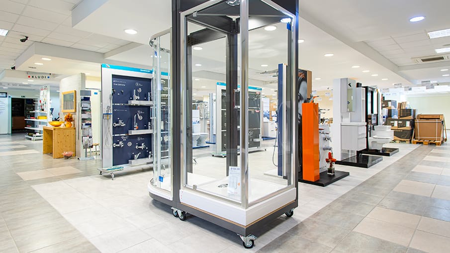 Podoba našej predajne sa v priebehu času výrazne zmenila. Sme pyšní, že keď k nám teraz prídete, môžete si prezrieť to najžiadanejšie kúpeľňové vybavenie v prostredí moderného showroomu. Čo nemáme vystavené priamo v predajni, máme s veľkou pravdepodobnosťou v našom sklade, ktorý je súčasťou jedného areálu. Celkový obchodný a skladový priestor sa rozkladá na ploche viac ako 2 000 m² a máme v ňom uložených skoro 100 000 položiek, ktoré vidíte priamo v našom e-shope. Všetky tieto položky si môžete v e-shope jednoducho objednať, a následne v našej predajni vyzdvihnúť.