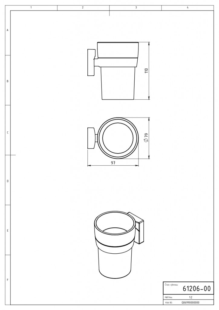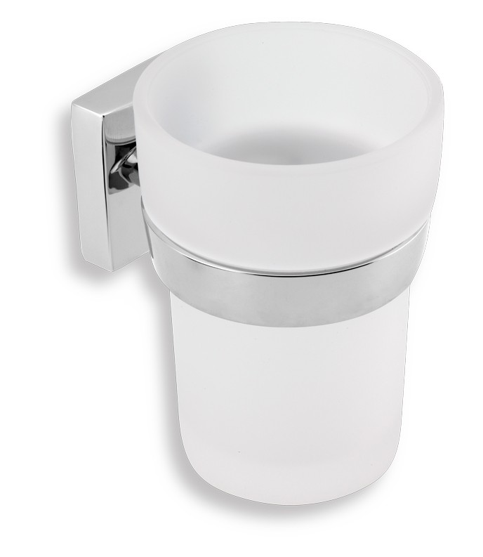 Sklenený držiak kefiek a pasty - chróm. Montáž lepením alebo vŕtaním.(GT)