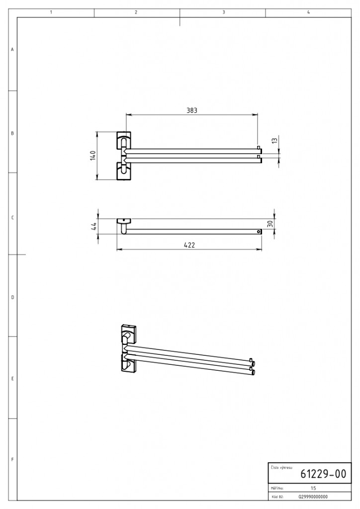 Dvojramenný držiak uterákov chrómový. Montáž lepením alebo vŕtaním.(GT)