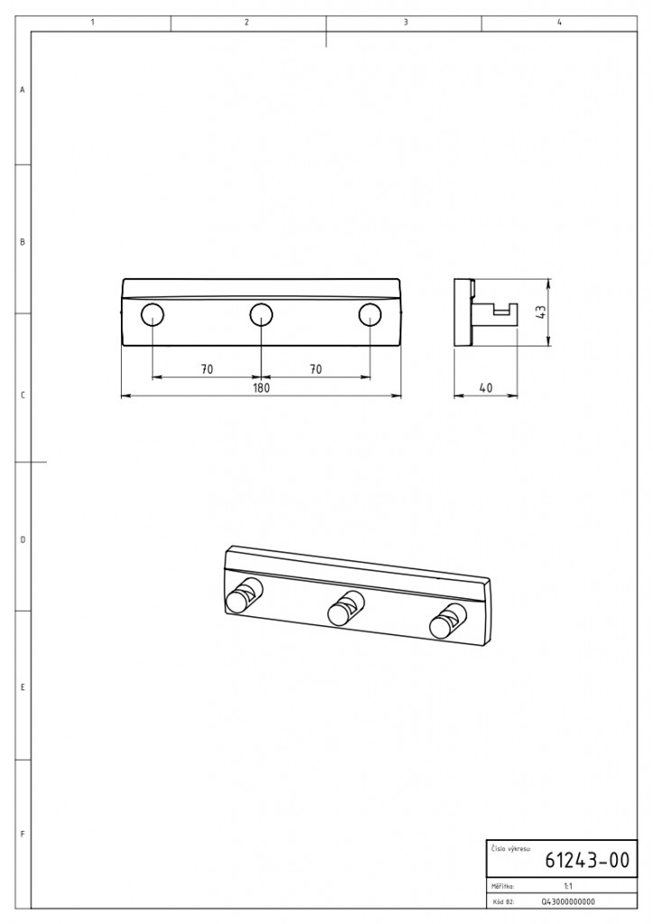 Chrómový 3-háčik - Montáž lepením alebo vŕtaním.(GT)