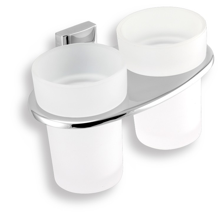 Dvojitý držiak kefiek a pasty - sklo. Montáž lepením alebo vŕtaním.(GT)