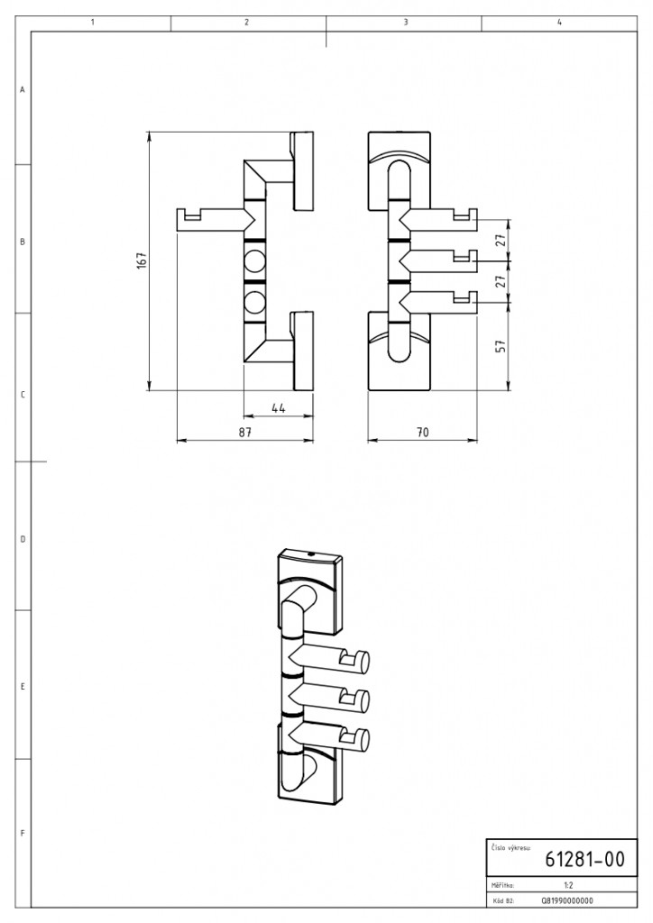 Chrómový 3-háčik - Montáž lepením alebo vŕtaním.(GT)