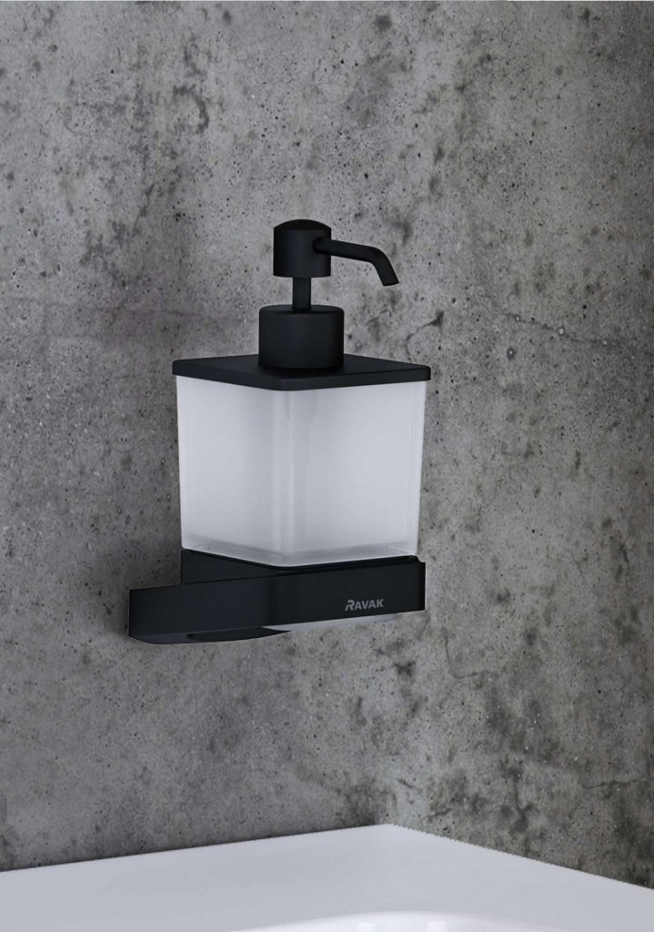 - držiak je na vnútornej strane vybavený plastovými krúžkami pre mäkké dosadnutie skleneného dávkovača