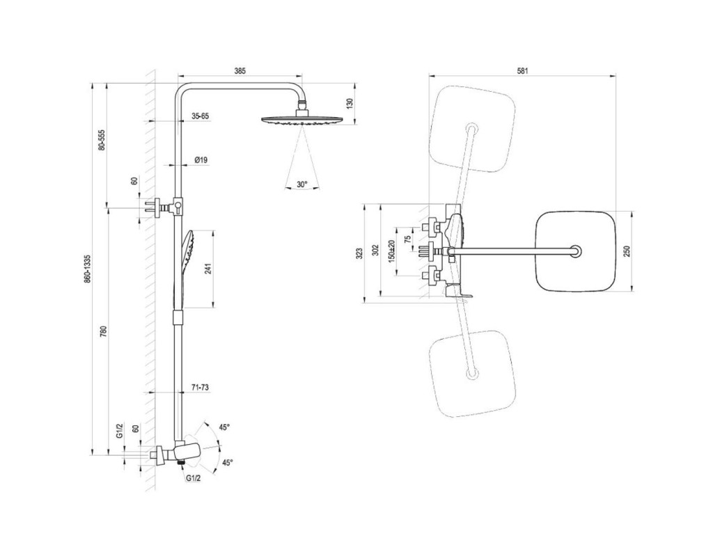 Sprchový systém TD F 098.00CR sa skladá z: