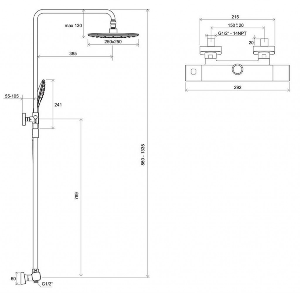 - hlavová sprcha 250 x 250 mm, dĺžka ramena 385 mm