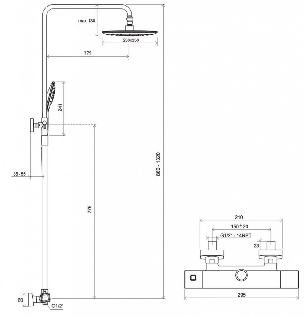 - obsahuje: termostat, hlavovú a ručnú sprchu, posuvný držiak, nástennú tyč a sprchovú hadicu