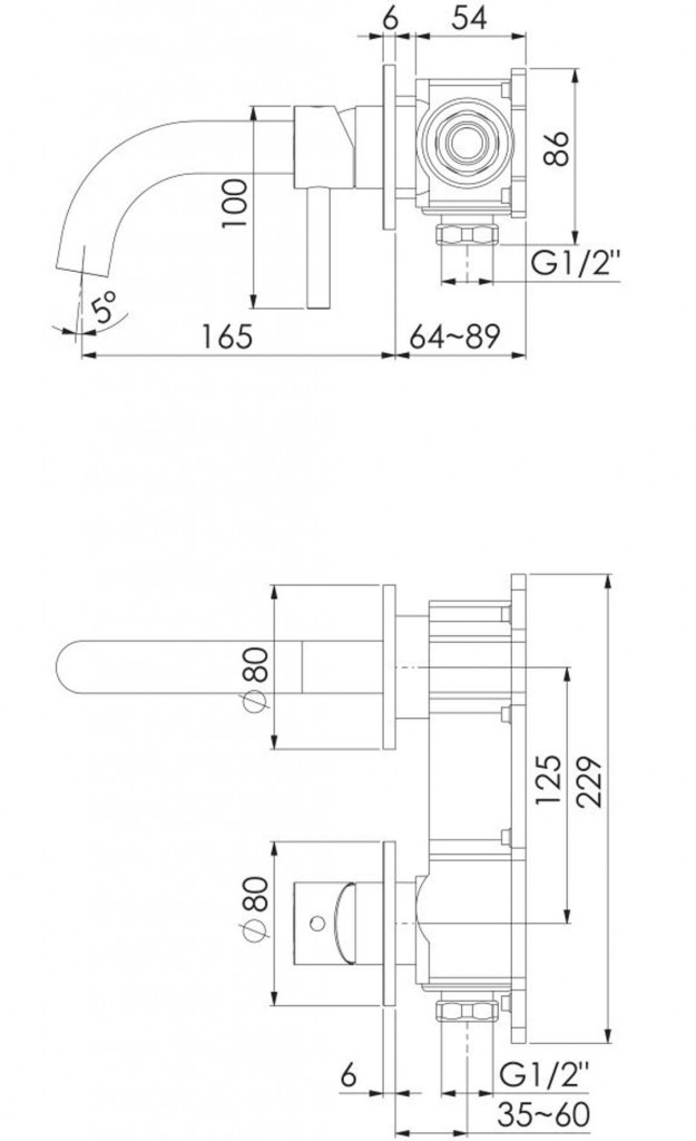 - dĺžka výtoku 165 mm