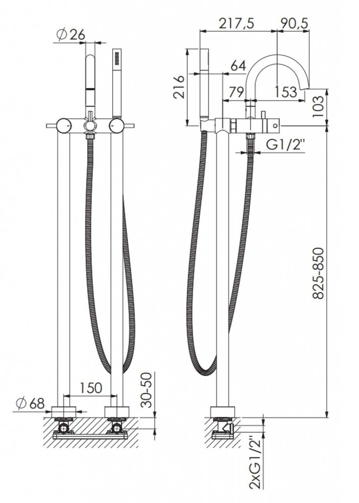 - s držiakom sprchy, sprchovou hadicou 1500 mm a tyčovou ručnou sprchou