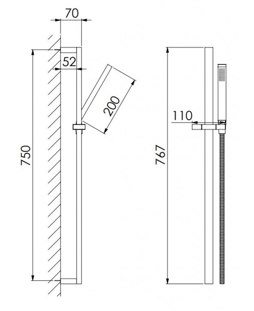 - s posuvným držiakom ručnej sprchy