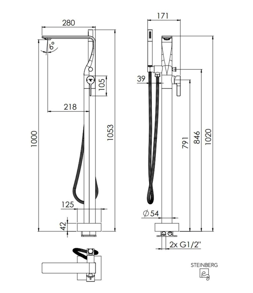 - s držiakom sprchy, sprchovou hadicou 1500 mm a tyčovou ručnou sprchou