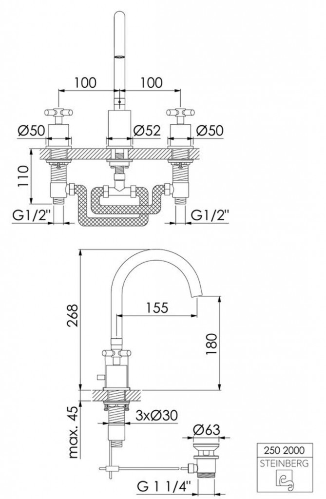 - s výpustou 1 1/4" - ovládanie tiahlom (bez pripojovacích hadíc k rohovému ventilu)