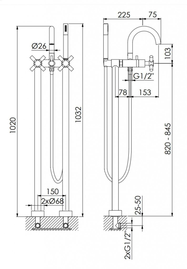- s držiakom sprchy, sprchovou hadicou 1500 mm a tyčovou ručnou sprchou