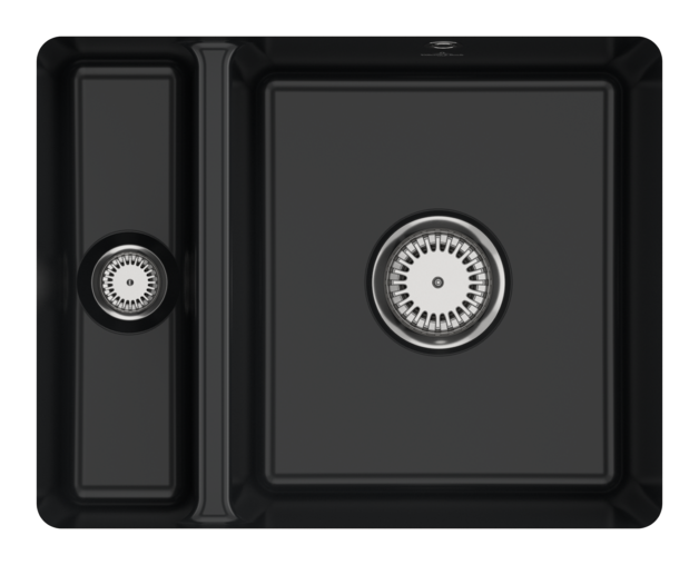 Keramický drez podstavný, bez excentra, farba čierna Ebony, šírka 54,5 cm, dve vaničky.