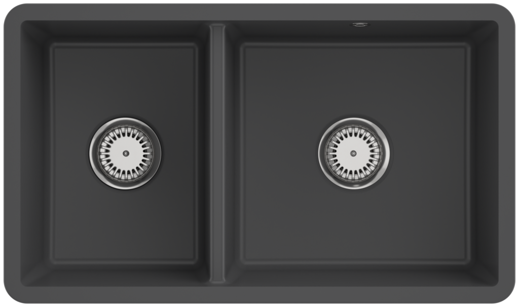 Keramický drez podstavný dvojitý, bez excentra, farba Graphit, šírka 75 cm