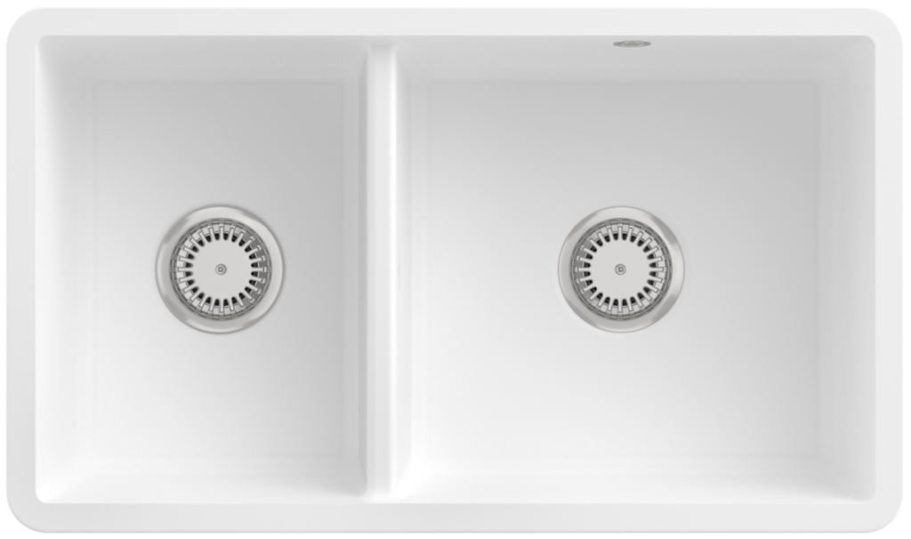 Keramický drez podstavný dvojitý, bez excentra, farba Stone White, šírka 75 cm