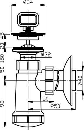 Priemer odpadu 40 mm. Určený pre batérie bez uzáveru výpustu