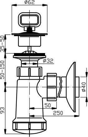 Priemer odpadu 40 mm. Plastová, biela mriežka.