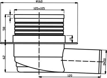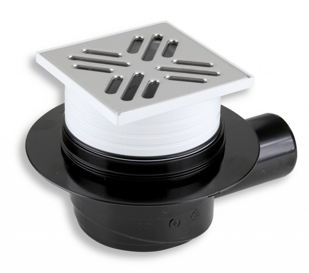 Rozmer 105 x 105 mm. Priemer odpadu 50 mm. Telo sifónu je plastové.