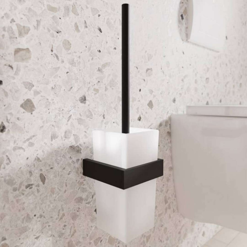 WC kefa, matná čierna, biele sklo