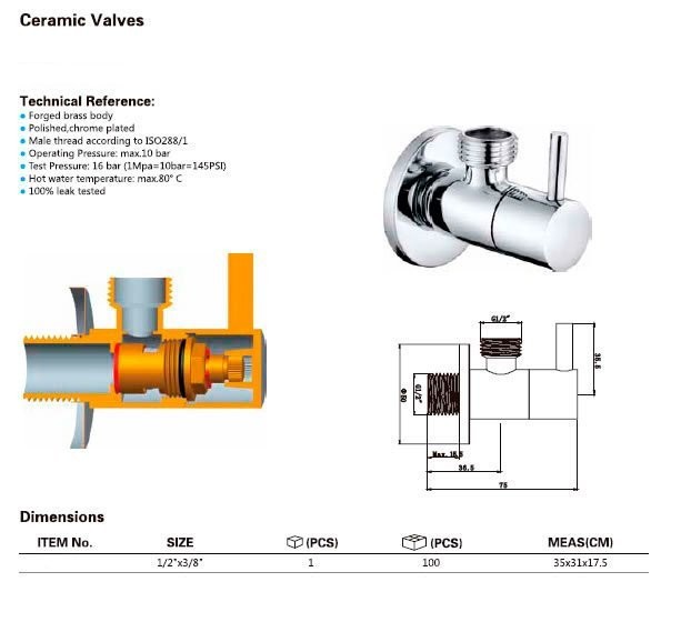 Rohový kulový ventil 3/8“x 1/2“, bez matky, kulatý, chrom (celý popis)