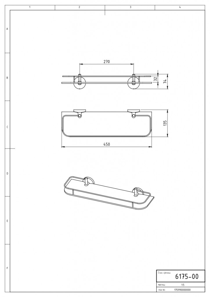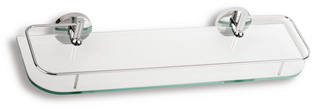 Rozmer skla poličky 125 x 450 mm. Sklo číre, hrúbka skla 6 mm, výška zábradlia 30 mm.Tento výrobok neodporúčame lepiť.