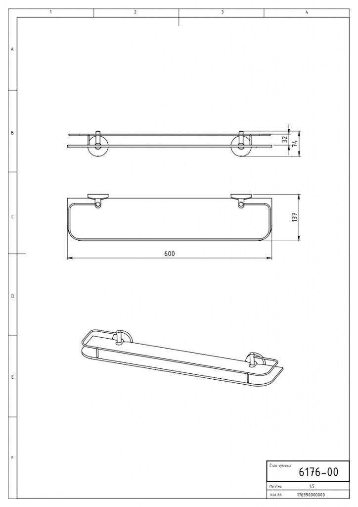 Rozmer skla poličky 125 x 600 mm. Sklo číre, hrúbka skla 6 mm, výška zábradlia 30 mm.Tento výrobok neodporúčame lepiť.