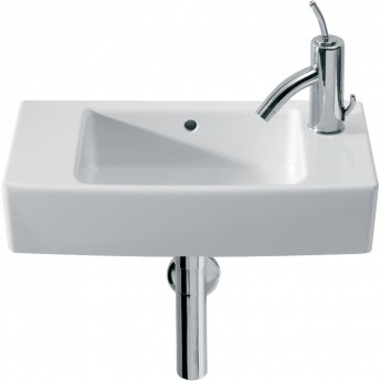 Hranaté umývadielko vrátane inštalačnej sady, s předvypíchnutým otvorom pre batériu na pravej i ľavej strane a prepadom.