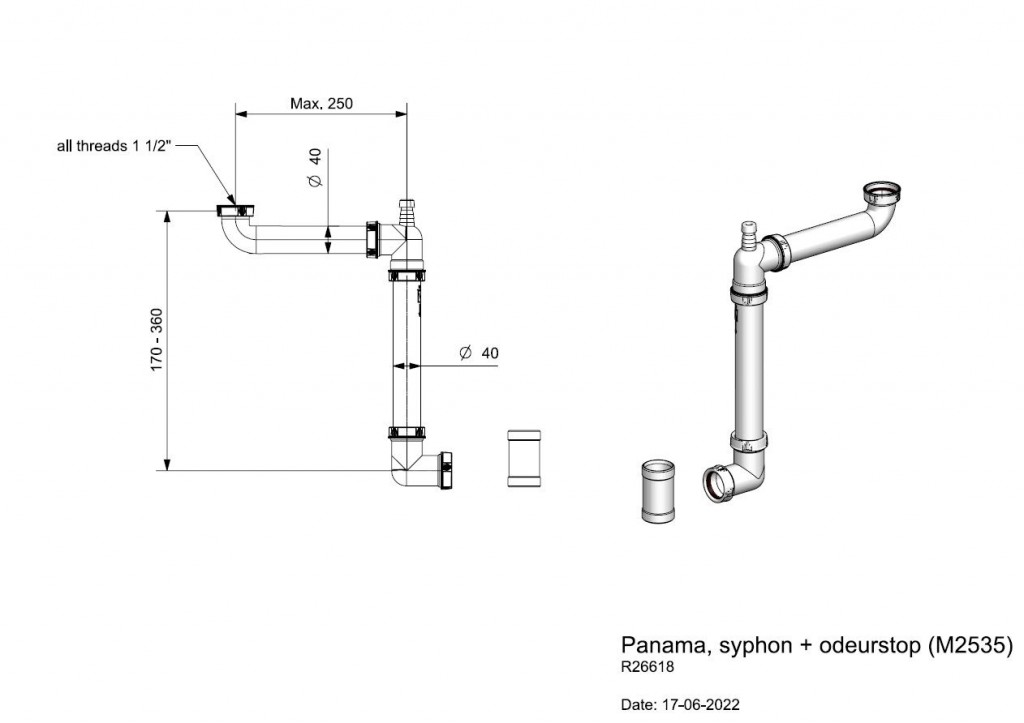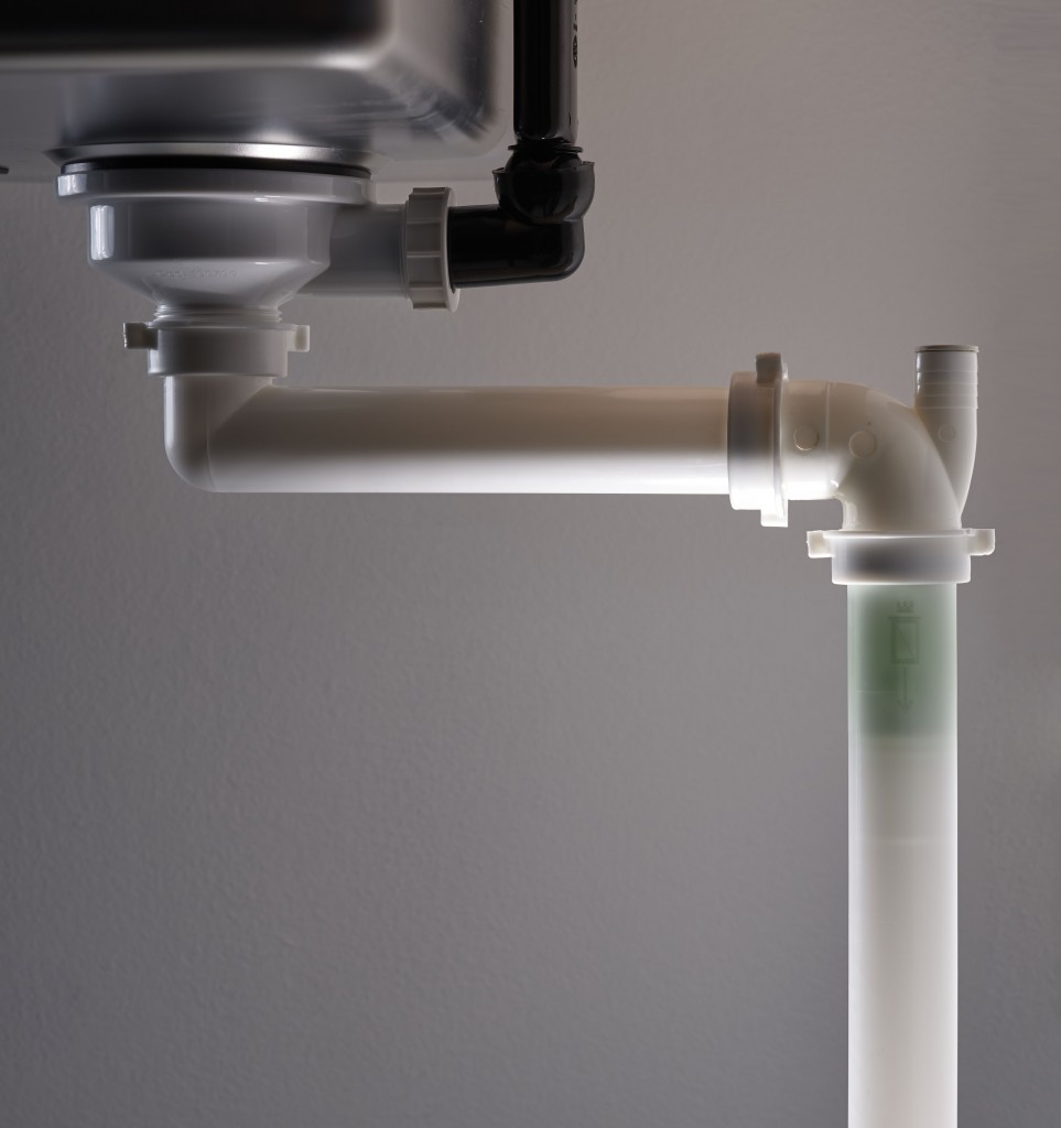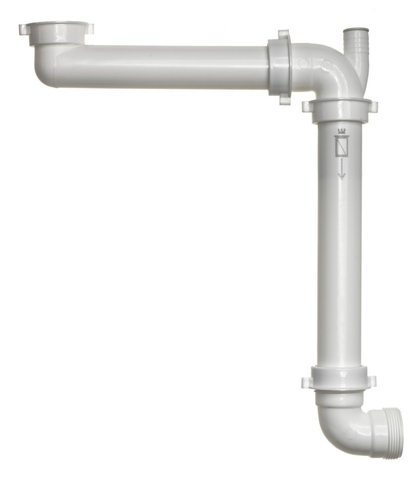 - Obsahuje spätný ventil, vďaka ktorému vedie potrubie priamo do zadnej časti drezu