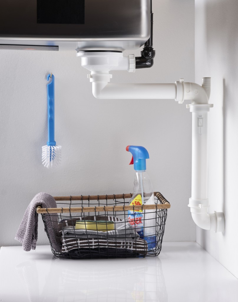 Sifón s unikátnym spätným ventilom pre mimoriadnu úsporu miesta v skrinke