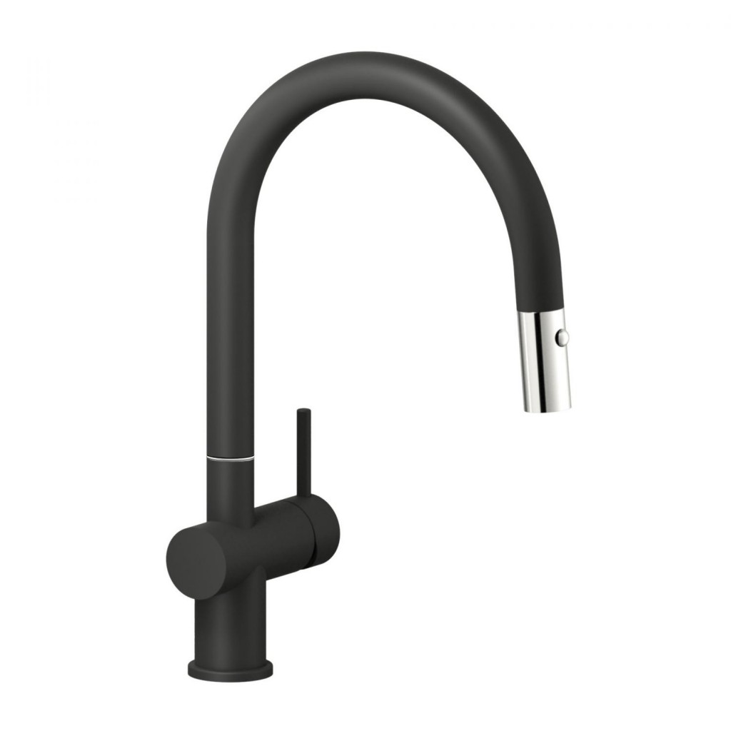 Drezová páková batéria, mosadz, povrch čierny/chróm, s odnímateľnou sprchou