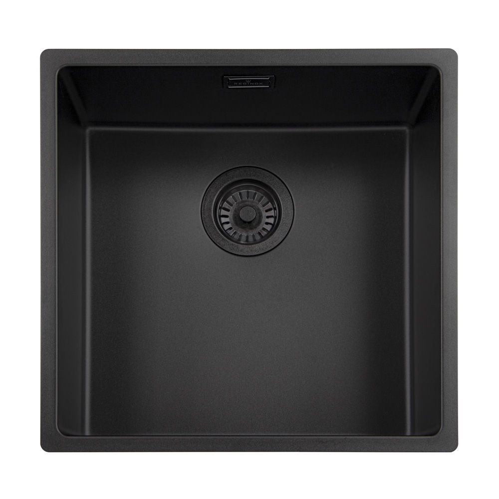 Nerezový drez 40x40 cm, čierny povrch Jet Black, montáž horná / do roviny / spodná