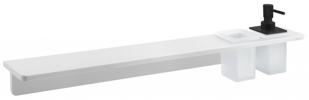 SAPHO - ABELINE polica, pohár + dávkovač/čierna, 800, Rockstone, biela mat (AE802-0101-03)
