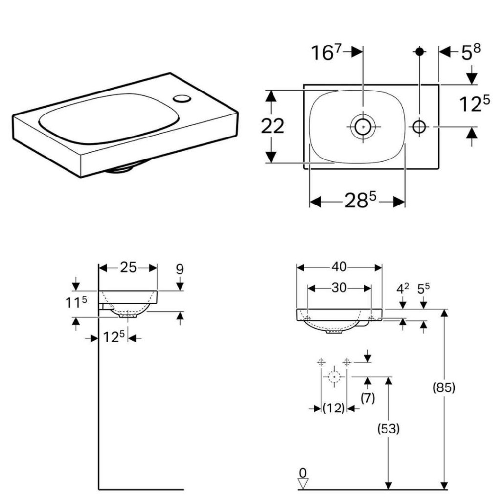 Umývadlo bez prepadu s jedným otvorom pre batériu